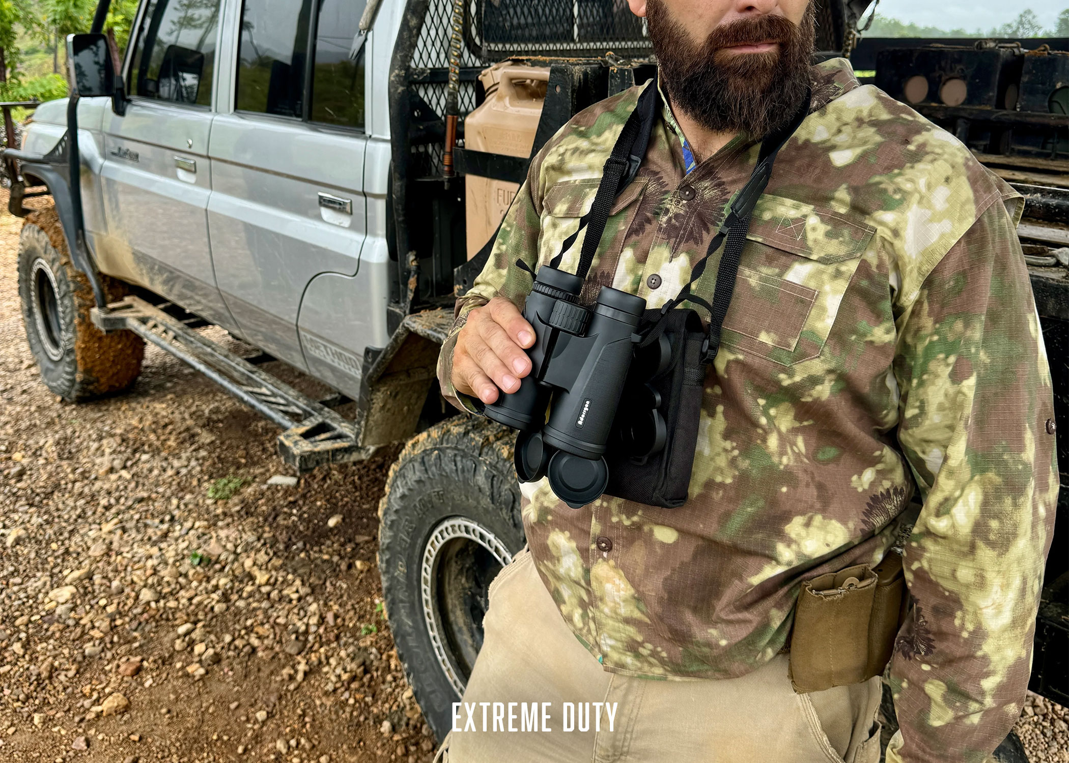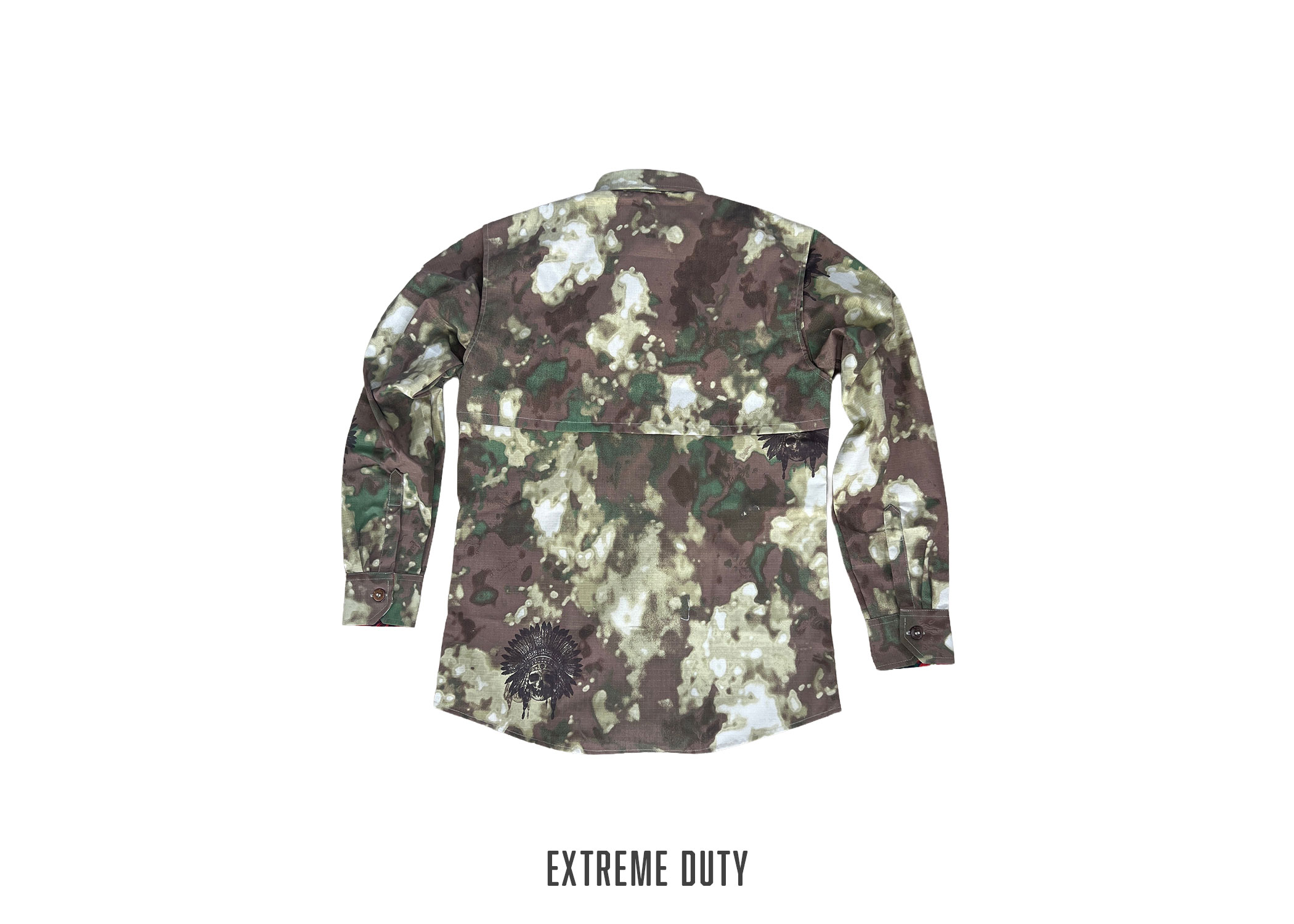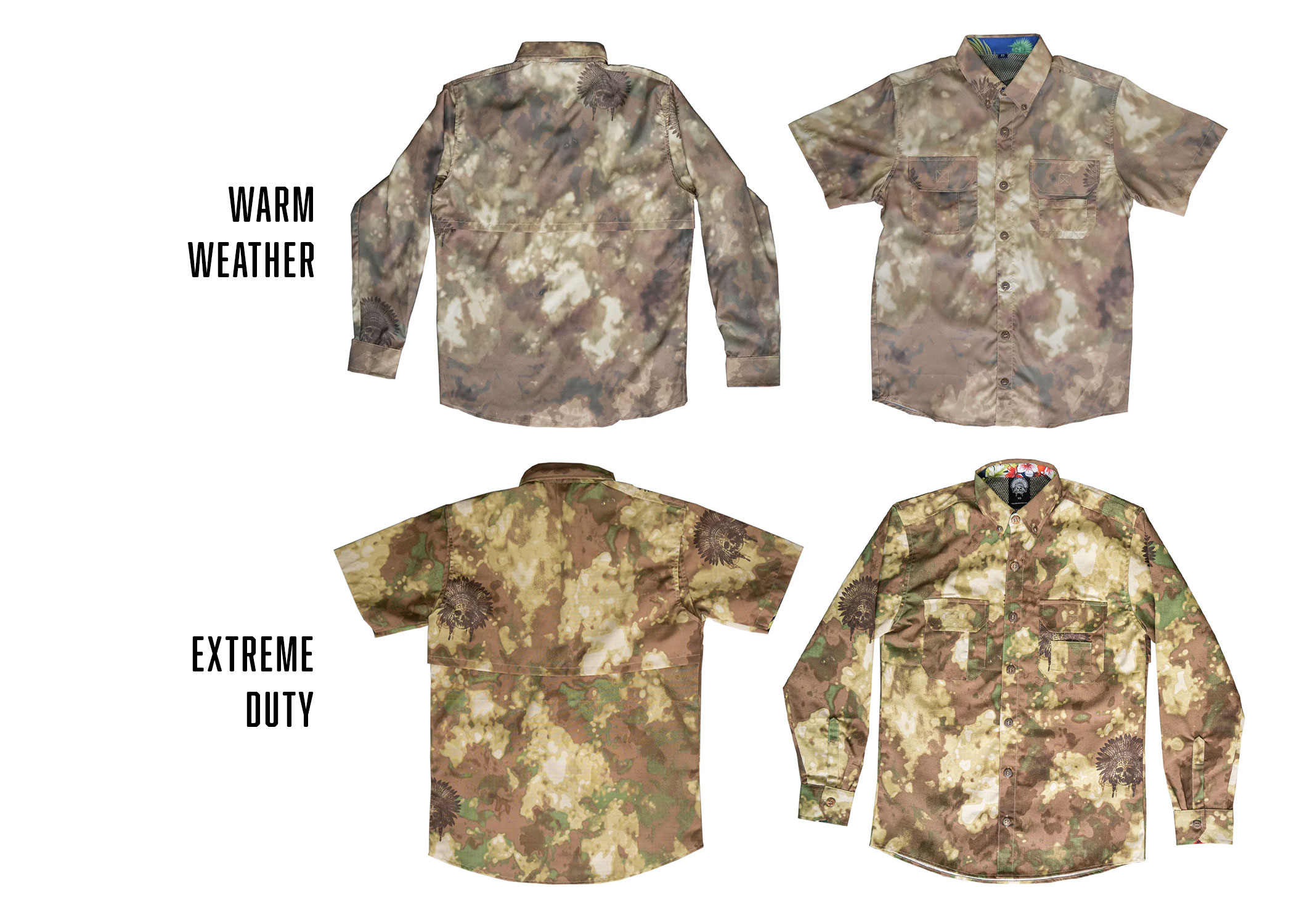 The Extreme Duty Gear version is virtually the same shirt design as the Warm Weather, with one major difference: The Extreme Duty is made from much thicker, heavy-duty poly-cotton RipStop. The Extreme Duty is flame resistant, thorn resistant, abrasion resistant, made from the same material as our Combat Pants, and your best bet for extreme environments!