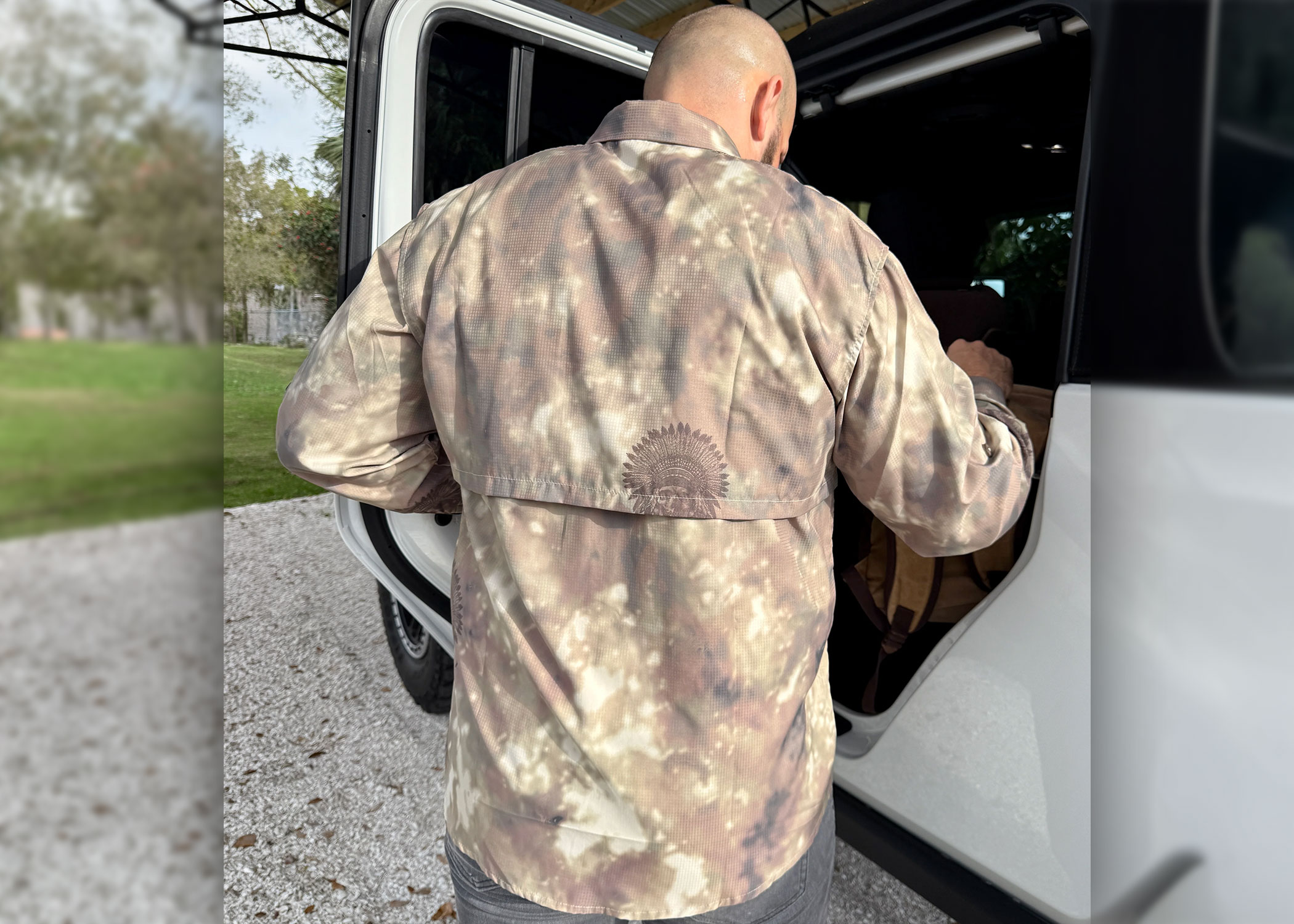 Our Combat Shirts feature our own proprietary camouflage print. We’ve managed to develop the world’s most effective camo by completely removing all hard lines and creating a pattern of diffusion between colors that affects the human brain at the subconscious level. Because one cannot identify solid outlines or shapes in this camo, and because of the proprietary diffusion design paired with our specific colorway, the user is able to truly blend into whatever is around them. Yes, even the colors featured in this pattern are selected because their ability to morph perception through optical illusion. Our camo actually appears to change and adapt to what’s around it, like a chameleon…