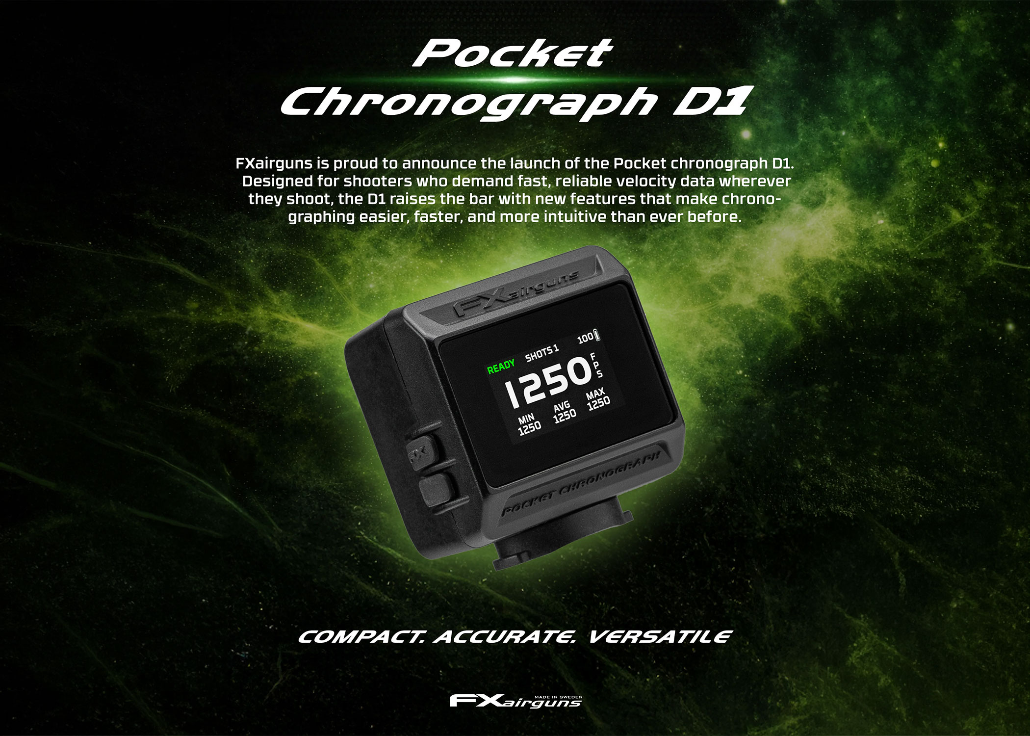 Designed for shooters who demand fast, reliable velocity data wherever they shoot, the D1 raises the bar with new features that make chrono-graphing easier, faster, and more intuitive than ever before.