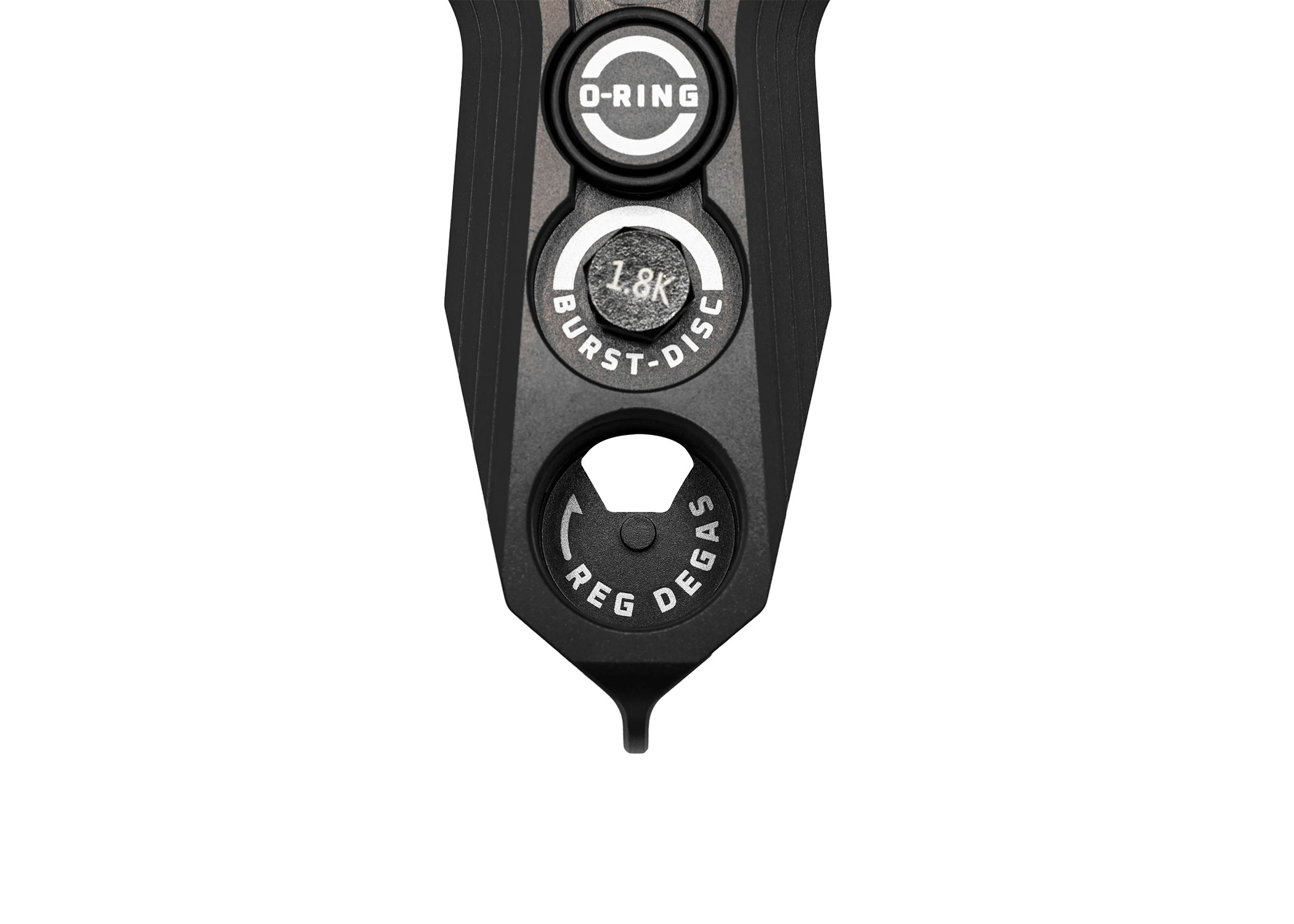 Here’s the rundown: screw your tank into the degas area to safely purge all air, then slide it through the regulator removal opening – built for both standard and long body regulators. Stubborn regulators? Secure the tool in a vice for extra leverage when you need it most. We’ve even added two spare o-rings and a 1.8k burst disc, plus a burst disc wrench that fits standard sizes. With the included carabiner, you can clip it to your pack for easy grab-and-go access whenever you’re in the field.