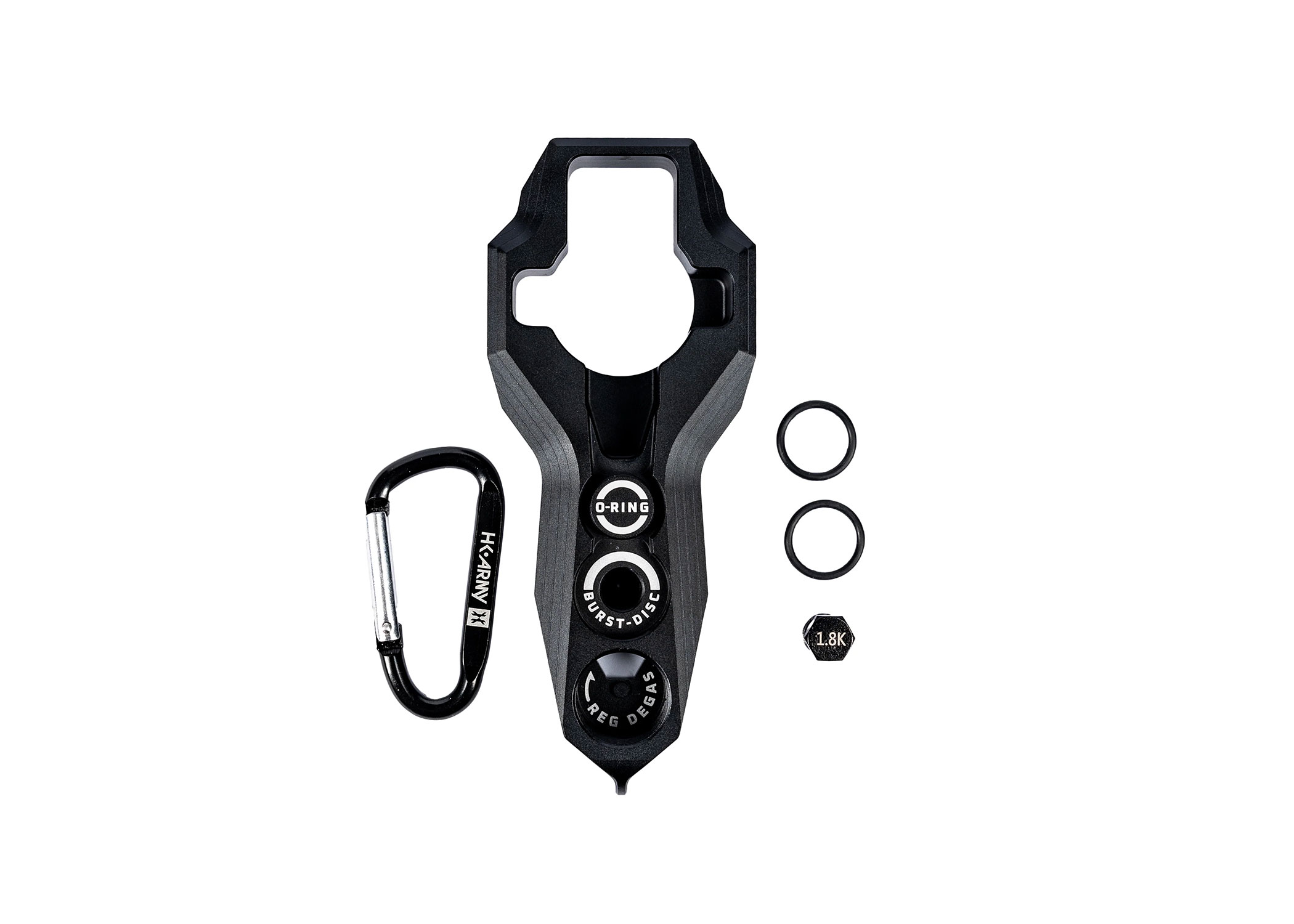 HK Army Reg Multi-Tool – the ultimate tool for keeping your tank setup dialed in and ready to roll. This tool lets you safely degas, remove, and fine-tune your regulator with ease. Its durable aluminum build, laser detailing, and smart, field-ready design mean it’s tough enough to take on any challenge – and compact enough to stay by your side with the included carabiner clip.