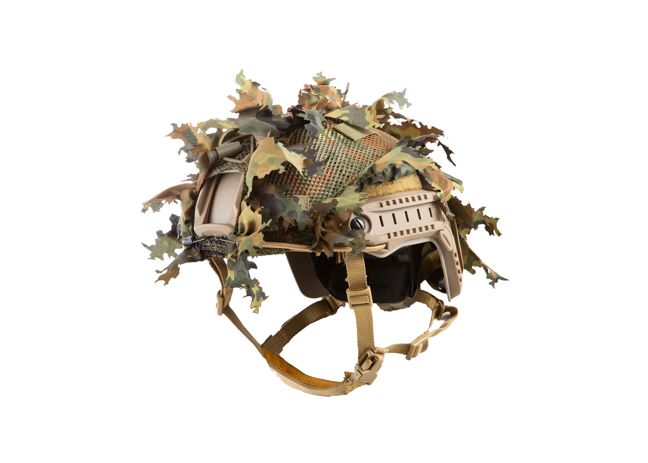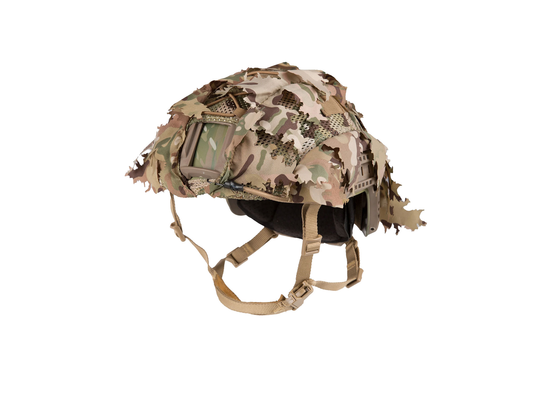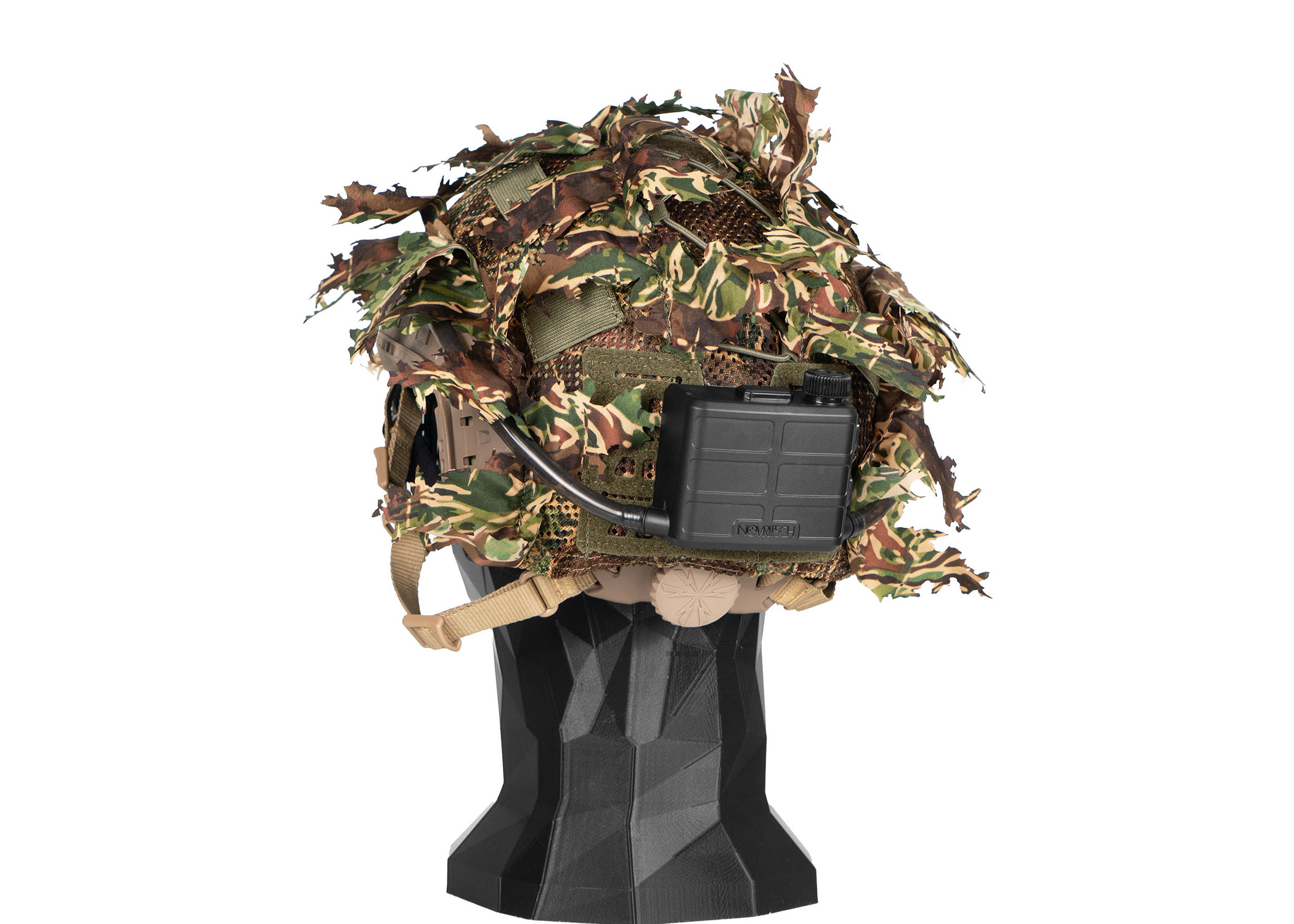 Helmets are easy to spot from a distance because of their round shape which resembles a human head. That’s why breaking it up with some 3D camouflage helps! This helmet cover fits perfectly while still allowing the use of helmet accessories such as NVGs, counterweights, strobe lights, flashlights, and the Anti Fog Unit that can be attached to the velcro at the back. Additionally, the cover features elastic bands and MOLLE for further attachments.