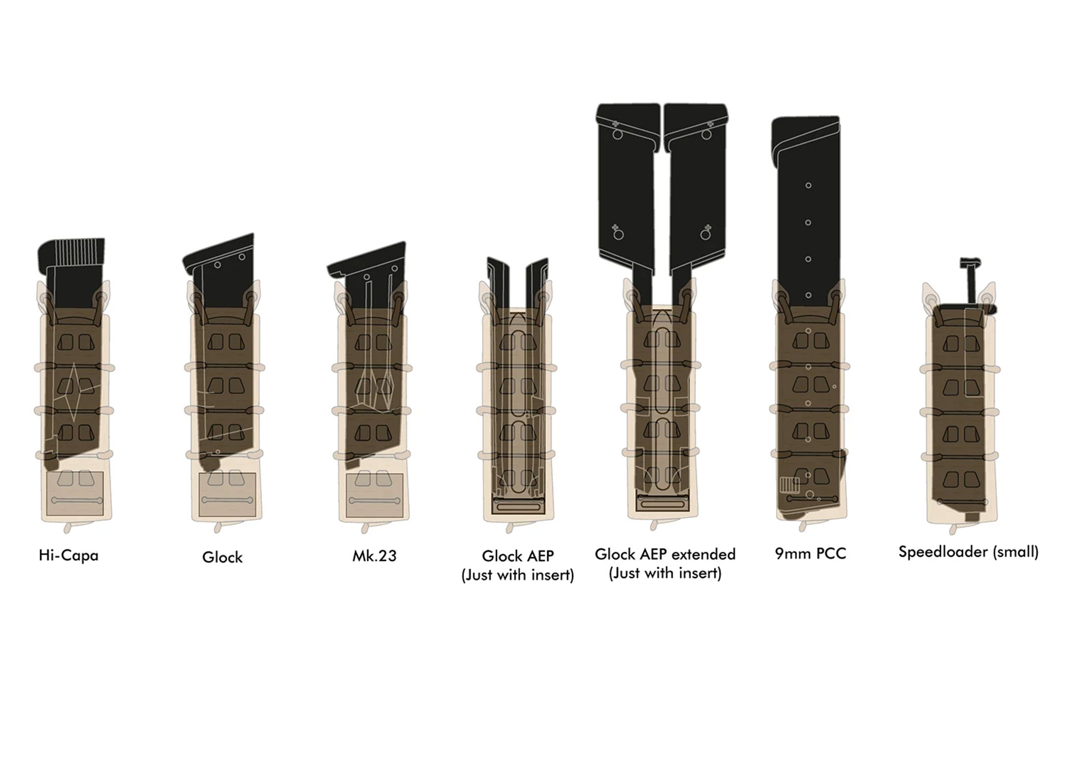 Three different positions for your magazine. Are you afraid of losing your magazine? Remove the insert and it will sit very deep in the pouch providing a lot of retention. Even HiCapa magazines.