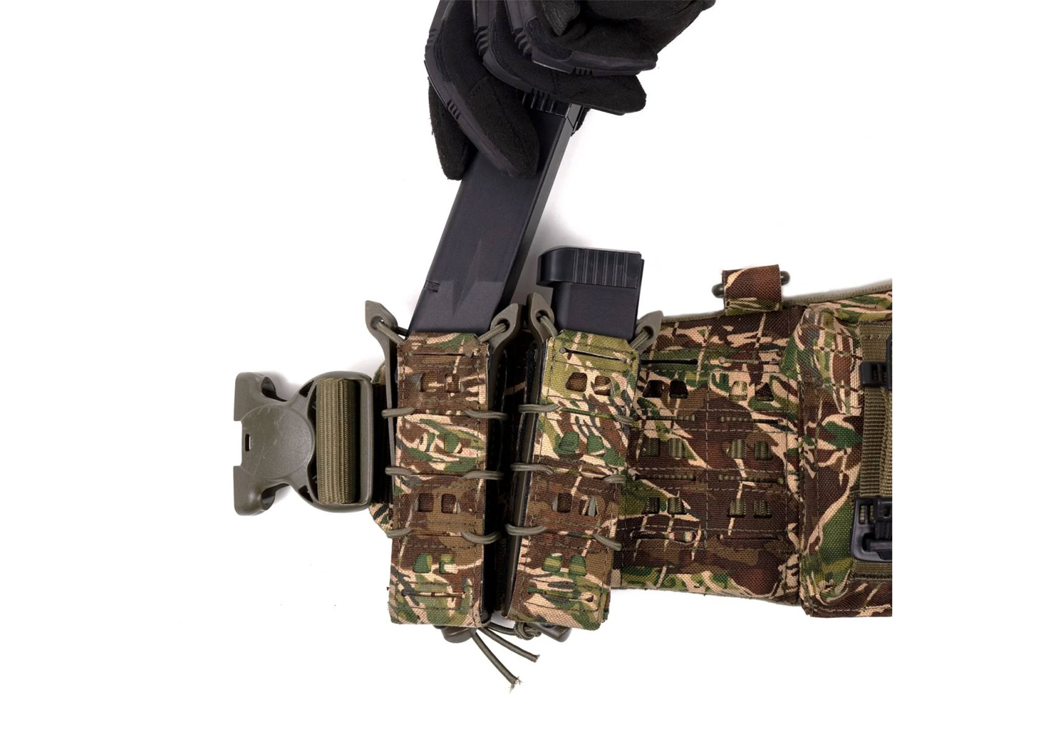 It perfectly fits most pistol magazines. Shock cord allows you to adjust the amount of retention and laser cut front and back molle panels are a must in the 21st century.
