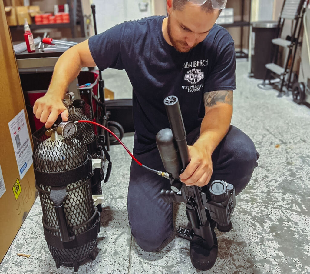 Outfitted with top of the line commercial compressors, we fill steel and carbon fiber HPA tanks to 4500 psi in minutes. We also can fill paintball tanks, small bottles, and rifles themselves. Tanks must be DOT certified and less than 5 years from their last hydrostatic test date.